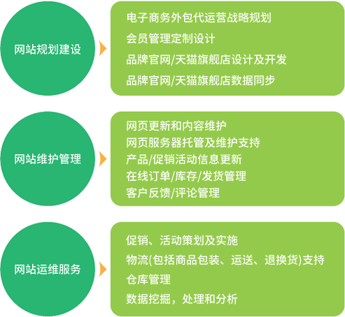 邦治联合科技电商代运营商可以为传统企业提供菜单式或整体的电子商务外包代运营服务,帮助企业有效地降低成本,提高工作效率,满足企业对电子商务的战略拓展和实操的需求。